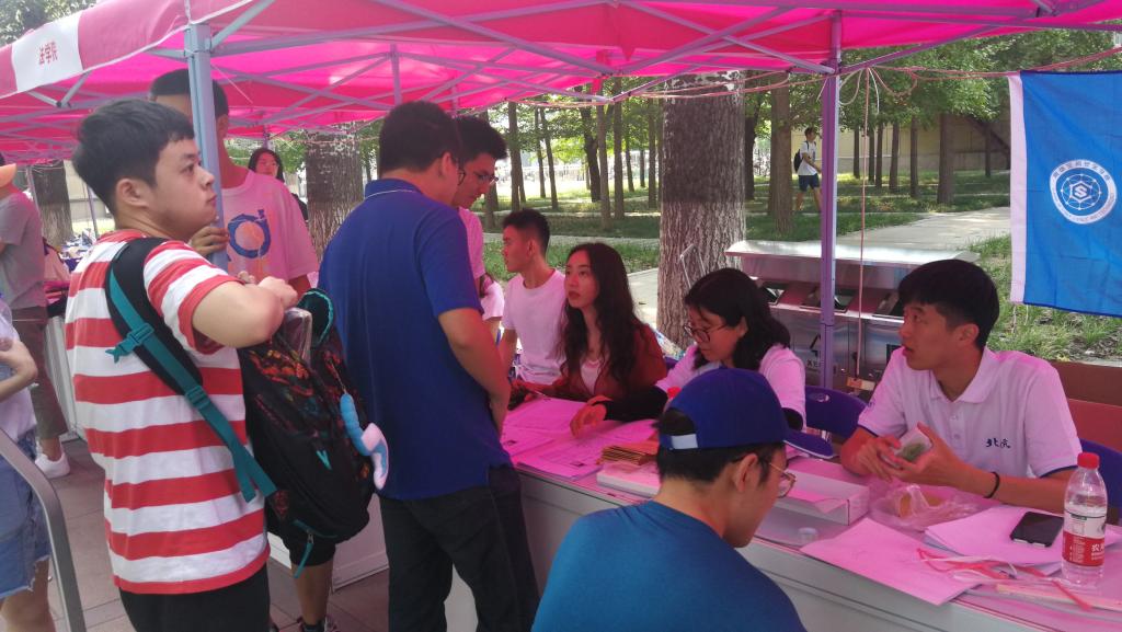 经过充分的准备工作,9月5日上午7时30分,迎新工作人员早早就来到了新生报到点,迎新报到工作正式开始。上午8时,新生和家长陆续来到报到点,迎新工作人员热情接待了每一位前来报到的同学。